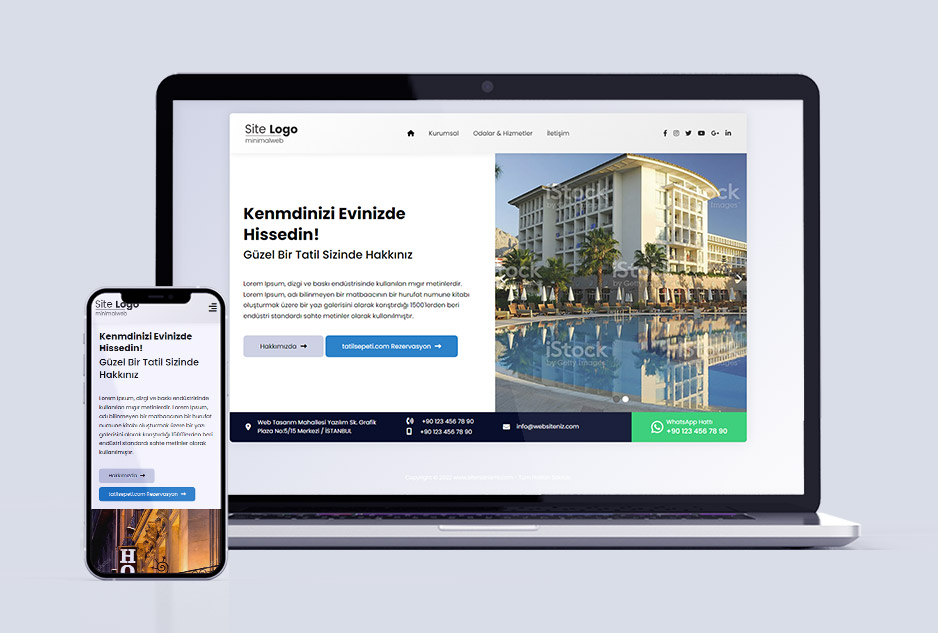 Sade tasarım ile hazırlanmış minimalweb ile firmanıza ait tanıtım web sitesine sahip olabilirsiniz. Firmanız hakkında iletişim, kurumsal ve hizmet alanları gibi bilgilerinizi tanıtabilirsiniz.